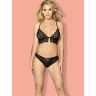 Красивый кружевной комплект, который понравится любой девушке. Скрывая всё, что необходимо скрывать, он нежно обрамляет грудь и подчёркивает плавную линию бёдер. Изящный вырез на спине не только оставляет место для ласк, но и позволяет использовать комплект для некоторых видов нарядов с открытой спиной. Игривый узор из пересечённых лент на трусиках является интересным дополнением. В комплекте: лиф, трусики.