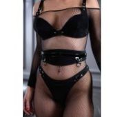 Небесное слияние кожи и высококачественного металла делает это бикини абсолютно сногсшибательным! Cвязанная кожаные трусики-тонг состоят из двух отдельных частей, искусно соединенных разнообразными металлическими цепочками. «Лифчиковая» часть сделана только из металлических цепочек и уплотнительных колец, к которым прилагается оригинальное cвязанное кожаное ожерелье! Никогда не было так легко выразительно высказаться! В комплекте: лиф, трусики-тонг.