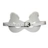 Игривая маска белого цвета, выполненная из натуральной кожи. Ушки маски украшены нежным белым эко-мехом, что придаёт ей изящности. Фиксируется сзади с помощью металлической пряжки, позволяя выбрать комфортный обхват головы. Форма макси эффектно подчеркивает глаза и создаёт необычный образ.