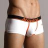 Белые трусы-хипсы с черной резинкой и надписью Movere.