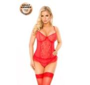 Комплект официантки. Комбинация с открытой грудью, сзади на завязках. Также включает в себя манжеты и украшение на шею, декорированные контрастными бантиками. Т-стринги в комплекте.