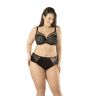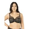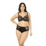 Бюстгальтер Diana M выполнен на косточках, чашки мягкие, шитые, нижняя часть из сетки с вышивкой черной и зеленой нитью, продублирована сеткой, верхняя часть из черной сетки, спинка из микрофибры. Бретельки пришиты, регулируются по длине, фурнитура металлическая цвета желтого золота. На спине застёжка на удлинитель.