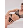 Бюстгальтер Sono выполнен из сетки с геометрическим рисунком, чашки-треугольник мягкие, бретели регулируются по длине, под бюстом широкая резинка, регулируется по длине, на спине с застежка. Фурнитура металлическая цвета золота. Резинка под бюстом декорирована бархатными резинками с металлическими золотыми элементами и тонкой цепочкой. Внимание: европейские размеры! Для определения российского размера необходимо прибавить 6!