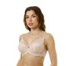 Бюстгальтер на каркасах с дублированной чашкой. Чашки имеют Т-образное членение, что позволяет придать груди правильную округлую форму. Вырез каре дублированного слоя делает грудь визуально выше и более наполненной. Ажурный полупрозрачный слой в верхней части чашки эффектно украшает бюстгальтер и позволяет нивелировать некоторые проблемные места в случае их наличия. Широкий стан с боковыми упругими пластинами плотно облегает тело и обеспечивает стабильную комфортную посадку бюстгальтера на фигуре.