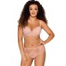 Бюстгальтер на косточках, чашки шитые, на тонком поролоне, со съемными пуш-ап вкладышами, внутренняя сторона прошита хлопковым трикотажем, внешняя часть чашки из кружевного полотна с люрексом. Окантовка косточек на чашках декорирована строчками с люрексом. Бретельки не отстёгиваются, регулируются по длине, на спине застёжка - удлинитель на крючках, фурнитура металлическая цвета меди.