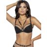 Бюстгальтер Leah выполнен на косточках, чашки шитые, нижняя часть чашки на тонком поролоне, внутренняя сторона проложена хлопком, внешняя сторона из микрофибры черного цвета, верхняя часть из телесной сетки. Бретельки бюста не отстёгиваются, регулируются по длине, пояс из микрофибры и телесного цвета сетки. На спине застёжка на удлинитель на 2 крючка. В зоне декольте несъемные черные декоративные полосы, идущие вверх по вырезу, обогащенные мягкими декоративными элементами, подсвеченными золотом, сзади переходят в тонкие бретели, дополнительно поддерживают бюст, регулируются по длине. Фурнитура металлическая цвета желтого золота. У бюстгальтеров Novika довольно тугой пояс, который адаптируется под тело после нескольких дней носки или одной-двух стирок. Рекомендуем использовать удлинитель пояса бюстгальтера на первое время либо выбирать следующий за «своим» размер, с поясом длиннее.