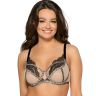 Бюстгальтер выполнен на косточках, чашки мягкие, шитые из 2-х слоев телесной сетки, резинки и ленты на косточках и швах чашек с леопардовым принтом, верхняя часть чашек из чёрного кружева, бретельки контрастного черного цвета не отстёгиваются, регулируются по длине. На спине застёжка на удлинитель, количество крючков в ряду застёжки увеличивается пропорционально размеру бюстгальтера. У бюстгальтеров/купальных лифов AVA довольно тугой пояс, который адаптируется под тело после нескольких дней носки или одной-двух стирок. Рекомендуем использовать удлинитель пояса бюстгальтера на первое время либо выбирать следующий за «своим» размер, с поясом длиннее.
