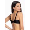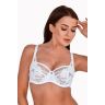 Бюстгальтер выполнен на косточках, с дополнительными боковыми поддержками, чашки шитые, из тонкой сетки и кружевного полотна с растительным рисунком (в черном варианте сетка телесного цвета), спинка из микрофибры. Бретельки не отстёгиваются, регулируются по длине, на спине застёжка - удлинитель на крючках, фурнитура металлическая крашеная.
