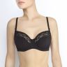 Классический бюстгальтер с мягкими чашками с боковым подкроем, на каркасах. Выполнен из кружевного эластичного полотна, с высокой модульностью. Полотно настолько функционально, что не требует дополнительного усиления в виде дублировочной сетки на боковых панелях. В то же время внутренняя часть трехразрезной чашки дублируется, чтобы гарантировать необходимую двойную поддержку груди. Эластичное кружево на верхней части чашки элегантно подчеркивает зону декольте. Бюстгальтер декорирован бантиками. Бретель функциональная, с элегантным блеском.
