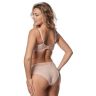 Бюстгальтер Celine выполнен с формованными поролоновыми чашками типа spacer, на косточках, с боковым подкроем, внешняя сторона чашек гладкая, пояс из фактурной сетки продублирован телесной сеткой. Бретельки пришиты, регулируются по длине. На спинке застёжка на удлинитель, фурнитура металлическая цвета желтого золота.