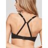 Бюстгальтер с мягкими двухслойными чашками, без косточек. Бочок усилен вертикальными, гибкими пластинами. Бретели несъемные, регулируемые с крючком для альтернативной перестежки. Застежка в два ряда на три позиции.