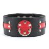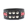 Ошейник выполнен из натуральной кожи черного цвета, декорирован вставками из красной кожи, заклепками. Ошейник фиксируется металлическими кнопками, позволяющими подобрать нужный размер, подойдет на обхват от 31 до 36 см. Подклад из нежной кожи обеспечивает комфорт. Стильный аксессуар поможет воплотить самые смелые фантазии фантазии в реальность. Ширина ошейника - 5 см.