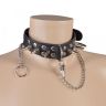 Чёрный кожаный ошейник с шипами и велюровой подкладкой