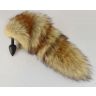 Черная анальная пробка с пушистым рыжим хвостиком