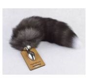 Черная анальная пробка из TPE с рыжим лисьим хвостом (натуральный мех). Длина хвостика - 20-25 см.
