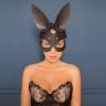Гладкая маска Зайка с длинными ушками выполнена из натуральной кожи и снабжена широкой резинкой.