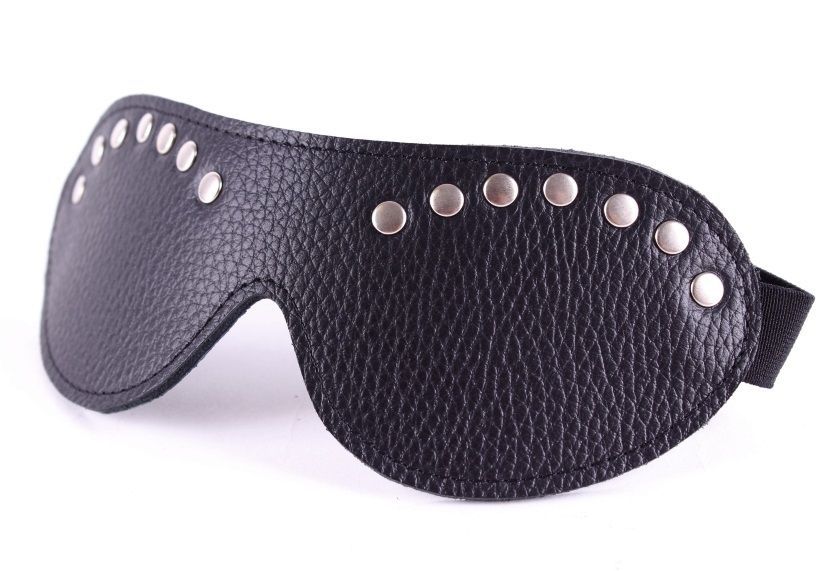 Маска из натуральной черной кожи отличного качества. Декор холнитенами в виде ресничек добавит изюминку в вашу игру. Обратная сторона выполнена из черной гладкой кожи. Комфортный аксессуар поможет сделать БДСМ игру яркой и насыщенной. Благодаря эластичной резинке, размер универсальный. Ширина - 7 см.