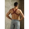 Яркая и стильная, очень качественная мужская портупея, полностью выполненная из натуральной кожи. Лицевая часть выполнена из красной кожи, а подклад - из черной, очень мягкой и приятной к телу. Фиксация происходит с помощью кнопок, что позволяет легко и удобно регулировать посадку аксессуара по фигуре. Портупея декорирована надежными сварными металлическими кольцами, к которым можно при желании пристегивать дополнительные аксессуары и комбинировать в разных вариантах. Портупея двусторонняя: ее можно носить по разному, меняя положение.