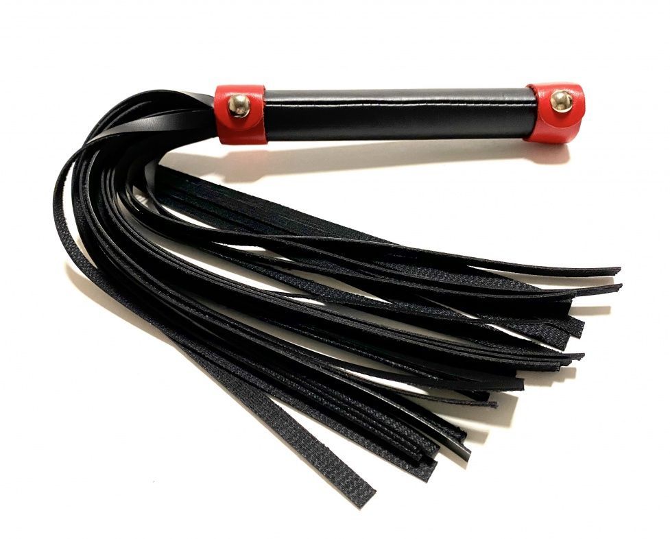 Стильная лаконичная плеть, выполненная из чёрной матовой эко-кожи. Рукоятка декорирована ярко-красными полосками, что добавляет контраста. Эта плеть поможет разнообразить вашу БДСМ игру и подарит новые ощущения. Экономичный, экологичный и красивый аксессуар!