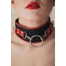 Ошейник выполнен из качественной натуральной кожи черного цвета . Аксессуар декорирован металлическим кольцом на двух карабинах, вставками из красной кожи, заклепками. Ошейник фиксируется металлическими кнопками, позволяющими подобрать нужный размер, подойдет на обхват шеи от 30 до 36 см. Мягкий подклад обеспечивает комфорт, помогая полностью погрузиться в БДСМ игру. Ширина - 6 см.
