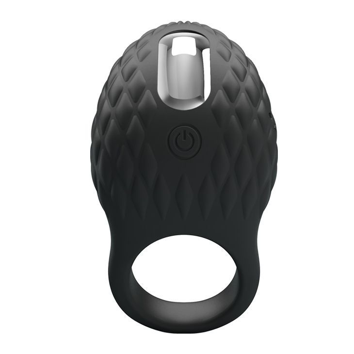 Черное эрекционное виброкольцо с рельефным дизайном Heloise