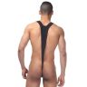 Очень открытое черное боди для мужчин из хорошо тянущейся ткани, на широких лямках.