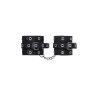 Наличие двух колец и карабинов, соединенных между собой металлической цепочкой, позволяет использовать изделие как раздельно – аксессуар-манжеты, так и как наручники для фиксации. К широким металлическим кольцам также можно присоединить и другие аксессуары при помощи карабинов.