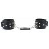 Оковы из натуральной кожи высокого качества. При производстве использована усиленная металлическая фурнитура. Подклад выполнен из нежной перчаточной кожи. Два металлических полукольца соединяются с помощью ремешка с карабинами. Фиксируются на ноге с помощью липучки, подойдут на обхват от 19 до 25 см. Стильный аксессуар поможет воплотить эротические фантазии в реальность. Длина соединения – 14 см.