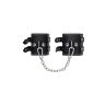Наличие двух колец и карабинов, соединенных между собой металлической цепочкой, позволяет использовать изделие как раздельно – аксессуар-манжеты, так и как оковы для фиксации. К широким металлическим кольцам также можно присоединить и другие аксессуары при помощи карабинов.
