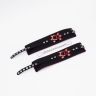 Изделие состоит из двух слоев натуральной кожи : основной слой – лицевая часть, и подкладка красного цвета с мягким наполнителем , которая обеспечивает комфортное и безопасное использование, не натирая кожу. Красная декоративная строчка добавляет изделию стильный акцент, подчеркивая его элегантность. Особый шарм оковам придает элемент в виде трезубца , который вместе с игрой цветов и фактур пробуждает самые смелые эротические фантазии.