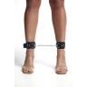 Оковы регулируются с помощью прочного ремешка из натуральной кожи , что позволяет настроить размер под любой обхват (от 24 до 33 см). В комплект входит прочная соединительная цепочка с двумя карабинами , обеспечивающая надежность и контроль.