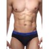 Черные мужские трусы-слипы с брендированной синей резинкой