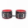 Наручники выполнены из толстой ременной кожи с подкладном из ярко-красной перчаточной кожи. Аксессуар декорирован красной строчкой. Металлическая пряжка крепко удерживает в подчинении, кожаное соединение на карабинах фиксирует наручники вместе. Ремни позволяю выбрать нужный размер, подойдут на обхват от 18 до 25 см. Мягкий подклад обеспечивает комфорт, помогая полностью погрузиться в БДСМ игру. Ширина - 6 см.