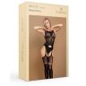 Закрытая открытость, сокрытые ключицы, обрамленная кружевом грудь. Динамика узоров сетки черного цвета ведет взор вниз, к бедрам, окаймленными цветочным узором, имитирующим чулки. Пояс выполнен из однородного плетения, которое делает талию более изящной. Особый состав и плетение не сковывает движения и не перетягивает тело, а значит вам будет комфортно!