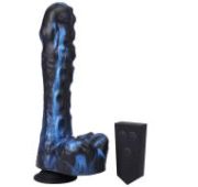 Черный страпон на ремнях с вагинальной пробкой - 15 см.