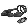 Черный вибростимулятор простаты с фиксацией кольцами. 12 режимов вибрации. Пульт дистанционного управления в комплекте. Рабочая длина - 7,5 см.