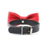 Очень элегантный и стильный аксессуар! Ремень ошейника выполнен из натуральной черной кожи. Декор в виде банта из красной натуральной кожи подчеркнет индивидуальность, станет отличным дополнением в выбранный образ. Ремень сзади позволяет выбрать нужный размер, подходит на обхват от 21 до 35 см, металлическая пряжка надежно фиксирует аксессуар. Размер банта - 12 х 6 см.