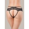 Горизонтальная перемычка спереди деликатно крепится к небольшим кольцам. Экстравагантный вырез сзади провоцирует партнера на немедленные действия. Дизайнерский прием — наложение слоев ткани — создает интересное сочетание прозрачных и матовых зон. Аккуратные участки, открывающие тело, эротический доступ — важные детали чувственного образа.