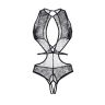 Эротическое боди Erolanta® Lydia из плотного кружевного полотна, с фигурным декольте. Застежка на шее. Открытая спинка. Перекрещивающиеся бретели соединены с регулируемым поясом.