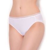 Трусы со средней линией талии, выполнены из деликатного хлопка со спандексом. Вырез ножки обработан эластичной тесьмой в цвет изделия. Талия отделана контрастной узкой кружевной резинкой. Декор - акцентный бантик. Хлопковая ластовица.