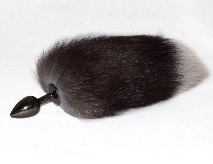 Хромированная анальная пробка с хвостиком из чернобурки