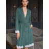 Женский домашний халат из роскошной приятной к телу ткани, содержащей вискозу и тенсел. Универсальная длина миди и модель на «запАх» подойдет всем. Халат поддерживается поясом и внутренней завязкой. По подолу и низу рукавов украшен ажурной кружевной аппликацией молочного цвета.
