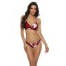 Женский красно-белый раздельный купальник с растительным принтом. Купальник выполнен из мягкого, быстро сохнущего полотна с принтом. Состоит из бюстгальтера и трусов. Бюстгальтер с формованными чашками без косточек. Обеспечивает комфортную, мягкую посадку. Бретели завязываются вокруг шеи. Застёжка сзади. Трусы средней посадки. В комплекте: лиф, плавки.