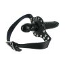 Кляп-фаллос изготовлен из ПВХ. Фиксируется на голове кожаными ремешками. С одной стороны кляп вставляется в рот и закрепляется на затылке с помощью ремней, с другой стороны - упругий дилдо. Длина фаллоса - 12 см., диаметр - 4 см.
