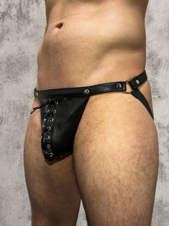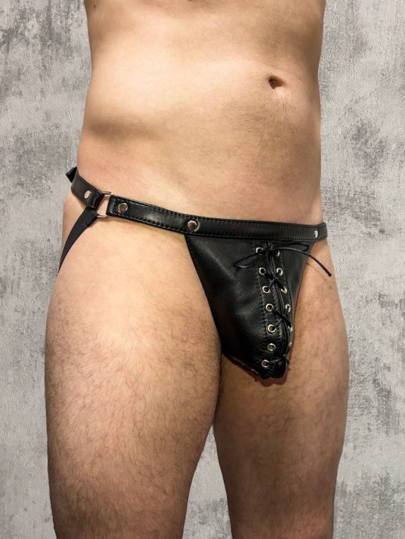 Мужские эротические трусы со шнуровкой - пикантная модель, которая создана, чтобы соблазнять и завораживать. Трусики-джоки выполнены из натуральной мягкой овечьей кожи, очень приятный к телу, под ягодицами расположены эластичные резиночки. Модель декорирована качественной металлической фурнитурой, обхват пояса регулируется с помощью пряжки, диапазон регулировки обхвата от 75 до 100 см. Главной изюминкой этих трусов является шнуровка спереди, что дает фантазии разыграться и может помочь разнообразить Вашу эротическую сессию.