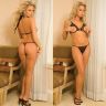 Мягкий лиф с кружвеными чашечками застегивается на спине и завязывается на шее. Трусики-стринги с заниженной талией и игривой шнуровкой сзади. В комплекте: лиф, трусики-стринг.