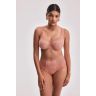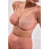 Бюстгальтер Celeste M выполнен в коралловом цвете на косточках, с дополнительными боковыми поддержками, чашки шитые из кружевного полотна, продублированы сеткой в тон. Спинка из кружева продублирована телесной сеткой. Бретельки широкие не отстёгиваются, регулируются по длине, с тонким поролоном для комфорта. На спине застёжка на удлинитель на 3 крючка. Фурнитура металлическая цвета меди.