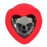 Красная силиконовая анальная пробка с черным стразом-сердечком - 9,3 см.