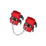 Не бойтесь своих желаний! Основатели бренда уверены: лучший способ избавиться от искушения - поддаться ему! Мягкие, красные, кожаные наручники с двумя чёрными, жёсткими ремнями могут стать стильным аксессуаром, а могут послужить вашим целям по своему прямому назначению. Частичное обездвиживание и невозможность двигать руками дают вам полную власть над партнером – взрослые игры для взрослых. Наличие двух колец и карабинов, соединенных между собой металлической цепочкой, позволяет использовать изделие как раздельно – аксессуар-манжеты, так и как наручники для фиксации. К широким металлическим кольцам также можно присоединить и другие аксессуары при помощи карабинов. Благодаря универсальному размеру наручники могут использоваться и мужчинами, и женщинами. Длина манжет - 18 см, ширина - 7 см.