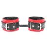 Красные наручники с чёрными проклёпанными ремешками с пряжкой